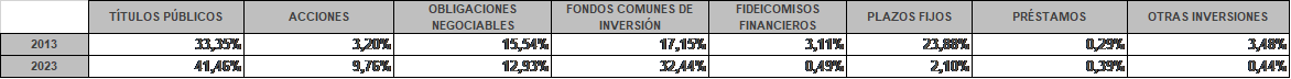 Como mencionamos en la introducción, la idea era comparar estos números con los que teníamos hace diez años, en junio de 2013, para poder analizar el comportamiento de las distintas compañías y si hubo cambios significativos en las políticas de inversiones de las mismas.