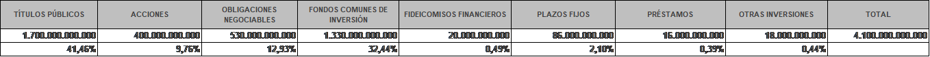 Como podemos observar, el rubro que más preponderancia tiene son las inversiones, ocupando casi el 70% del activo, seguido de los créditos, que se acercan al 20%. Si a las inversiones le agregamos los inmuebles de renta, la variación no es significativa, pero reafirma el predominio de las inversiones sobre el total del activo, alcanzando el 75%.