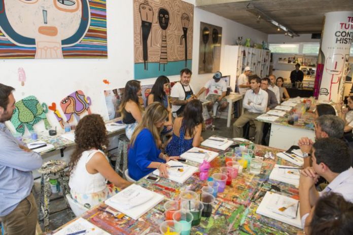 Los invitados disfrutaron de un almuerzo en Milo Lockett Bar, una novedosa propuesta del barrio de Palermo, donde se fusiona el arte de vanguardia y la comida gourmet. Luego del almuerzo, en su propio taller, el artista Milo Lockett recibió a los invitados, contó su historia y experiencias de vida, y los animó a plasmar su veta creativa a través de la pintura.