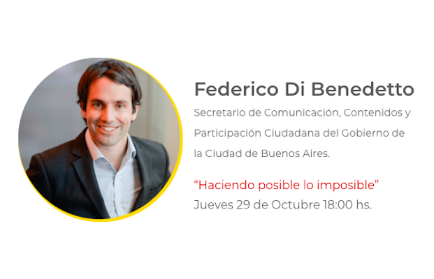 En el marco de los festejos por el 115º aniversario de La Perseverancia Seguros, mañana, jueves 29 de octubre a las 18 horas, se llevará a cabo la charla de Federico Di Benedetto, secretario de Comunicación, Contenidos y Participación Ciudadana del Gobierno de la Ciudad de Buenos Aires.