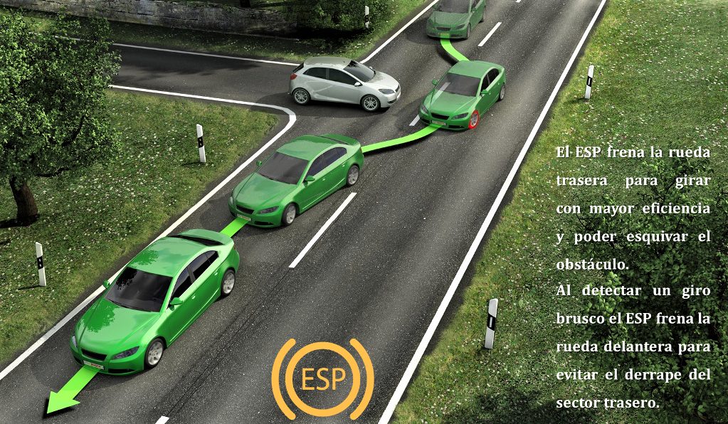 • Control Electrónico de Estabilidad (ESC, VDC, ESP o DSC, según la marca de vehículo), que es considerado por los especialistas uno de los dispositivos de seguridad activa más importantes. Puede evitar más del 40% de todos los siniestros con muertos al ayudar a los conductores a mantener el control del vehículo durante maniobras a alta velocidad o en caminos resbaladizos, y donde existe peligro de derrape y/o vuelco. En Argentina éste último debería regir para todos los vehículos, también los de carga, pasajeros y remolques nuevos a partir de enero de 2024.
