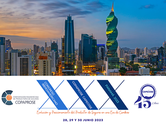 La Confederación Panamericana de Productores de Seguros (COPAPROSE) y la Cámara Panameña de Empresas de Corretaje de Seguros (CAPECOSE) invitan a participar en el XXX Congreso Iberoamericano COPAPROSE CAPECOSE Panamá 2023. Su lema es “Evolución y posicionamiento del productor de seguros en una era de cambios”.