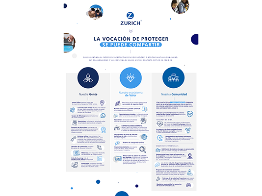 Zurich continúa con sus iniciativas globales y locales para ayudar a mitigar los efectos negativos de la pandemia mundial adecuando los procesos para avanzar a un modelo de negocios digital dirigido a sus clientes.
